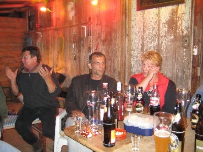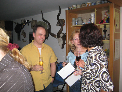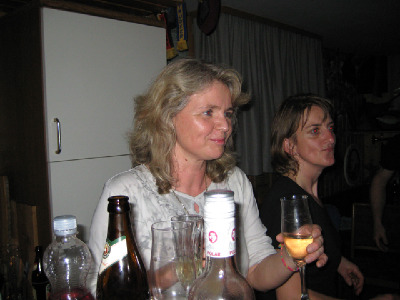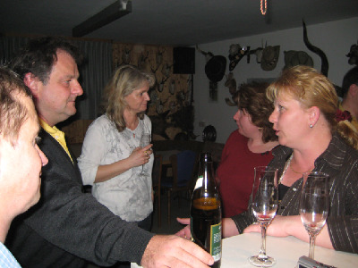 Im Laufe des Abends wurde viel gequatscht, in der Werkstatt nebenan viel geraucht und natürlich einiges von Herbert’s leckerem Schlehenlikör niedergemacht. Und je feuchtfröhlicher der Abend desto tanzfreudiger wurde die Runde. Nachdem der Teppich auf die Seite gerollt wurde hatten wir alle Platz auf der Tanzfläche und zu ABBA, Status Quo, BAP, Nena, Howie ..... wurde getanzt bis in den frühen morgen. Mit Helmut hatten wir einen guten DJ mit viel Geduld und Ausdauer und mit Beate und Herbert tolle Gastgeber.